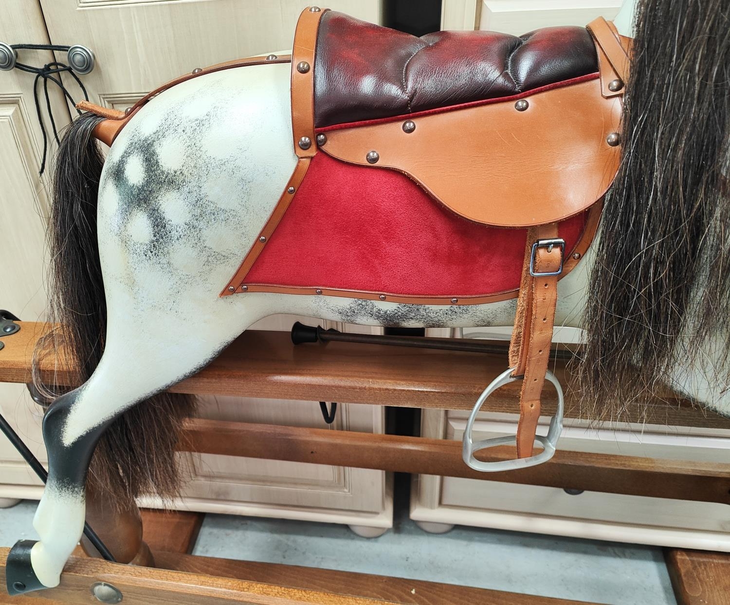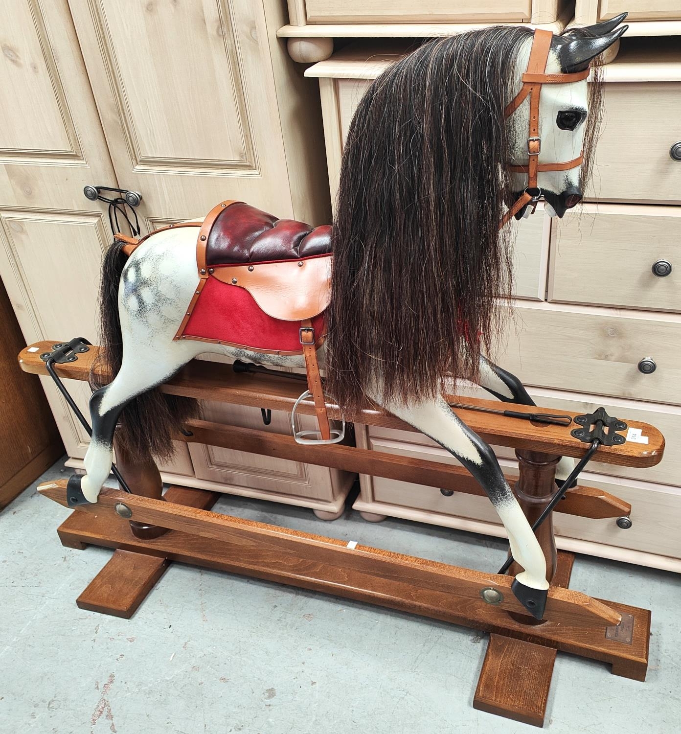 ROCKING HORSE: A Stephenson Brothers England large dappled grey swing action Rocking Horse, 2008, no 7219; length 135cm.
